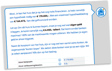 De eerste stap is om te berekenen hoeveel je kunt lenen en of je jouw droomhuis kunt betalen. Hypotheek24.nl heeft een aantal slimme tools die jou niet alleen inzicht verschaffen in je maximale hypotheek, maar ook wat je netto maandlasten worden. Begin dus alvast met het berekenen van je maximale hypotheek!