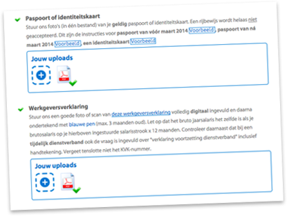 Om je hypotheek te regelen hebben we een aantal documenten van je nodig. Het uploaden van je documenten doe je in je eigen persoonlijke omgeving en eenvoudig met je smartphone. We geven je per document duidelijke instructies zodat het in een keer goed gaat en je precies weet om welke documenten het gaat. Wij beoordelen je documenten altijd binnen 24 uur, zo weet je snel of je document goed is. Handig toch?